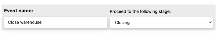 - The ‘event name’ sounds technical but it is simply the text which will appear on the button at the bottom of the process screen